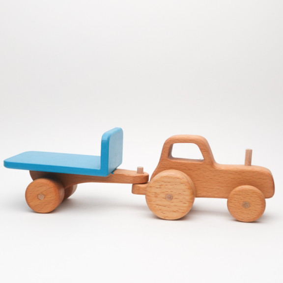 🌳 Materiale: Legno di faggio (trattore e rimorchio)